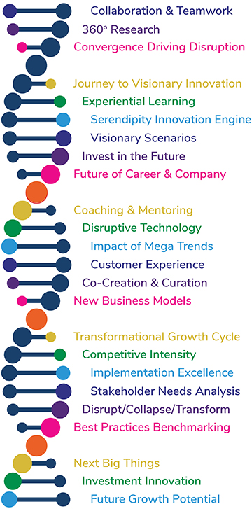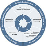 All behavioral research shows that the most learning and change is driven from experiential learning. We now see that the old model of research and consulting supports to clients was no where near effective enough in the best practices development and implementation of growth strategies. Our new platform which integrates Growth Workshops, Growth Strategy Dialogs and Briefings are designed to bring your entire team through the growth cycle system.